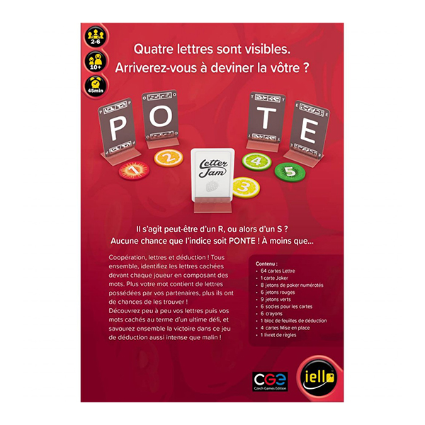 Avec Letter Jam découvrez un jeu de lettres particulièrement original dans lequel les joueurs s’entraident pour deviner quelles lettres sont placées face cachée devant eux… et ainsi constituer une liste de mots.
